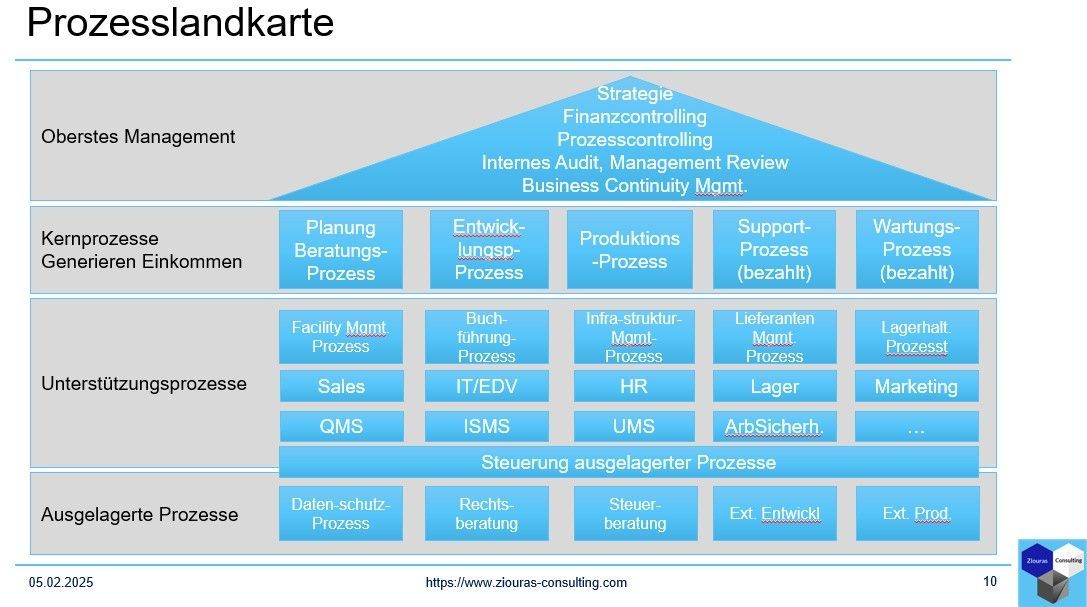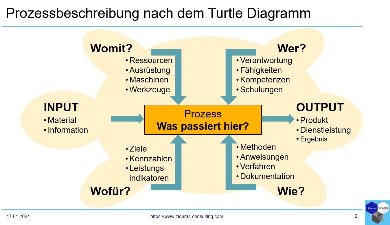 - Schnittstellen zu anderen Prozessen (evtl. mit Inputs, Outputs)